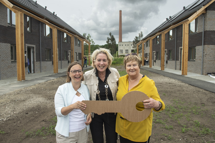 Op dinsdag 27 juni ontvingen de eerste huurders de sleutels van hun spiksplinternieuwe onderkomen op het Eendrachtterrein in Appingedam. Woonstichting Groninger Huis en Woongroep Marenland realiseerden hier 24 energiezuinige huurwoningen voor gezinnen. De bestuurders van de woningcorporaties Margriet Drijver en Laura Broekhuizen waren samen met wethouder Annalies Usmany-Dallinga van gemeente Eemsdelta aanwezig om huurders welkom te heten in hun nieuwe woning.