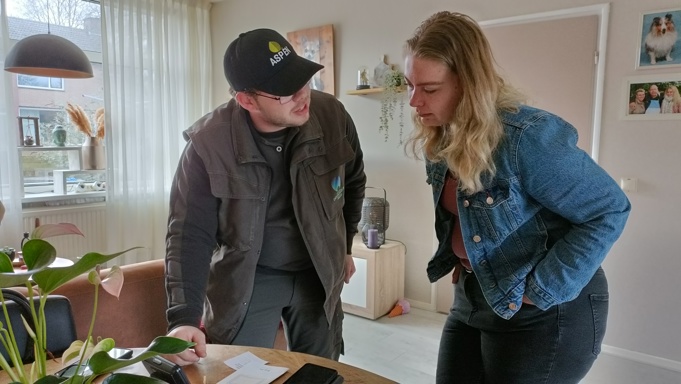 Jessica Katuin, een huurder van Woonstichting Groninger Huis, is één van de deelnemers. Vandaag wordt het energiedisplay in haar huis in Muntendam aangesloten. “Sinds ik op mezelf woon en zelf natuurlijk de energierekening betaal, ben ik al wel iets bewuster met mijn energieverbruik bezig. Niet onnodig deuren open laten staan of apparaten die ik toch niet gebruik in het stopcontact laten zitten, dat soort dingen. Maar eigenlijk heb ik geen idee wat ik daadwerkelijk op een dag verbruik. Daar hoop ik met het display achter te komen.”