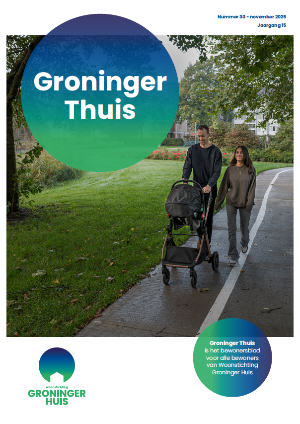 Twee keer per jaar ontvangen onze huurders en relaties ons bewonersblad Groninger Thuis. Een blad met onder andere veel leuke artikelen, het laatste nieuws, projecten en woontips.